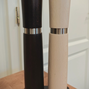 Jedná se o dva modely našich prkének vyrobené pro potřeby hotelové restaurace: vyztužené krájecí bukové desky s drážkou a 66cm dlouhé jasanové servírovací prkénka.